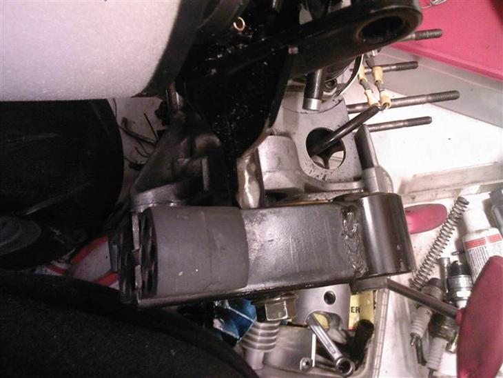 jeg skar den sorte stang på det originale ophæng over jeg skar enderne af stage 6'en også kunne jeg se at stage 6'en var hul også kunne jeg uden videre sætte de to stumper sammen.... derefter har jeg tilpasset de stænger der går igennem lejerne ved motorblokken de var en smule for lange.. men det funger !