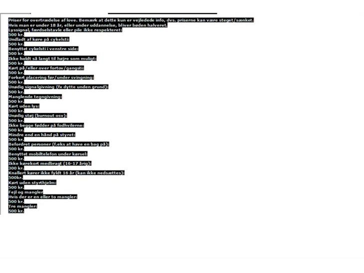 POLITI BØDERS OMKOSTNINGER