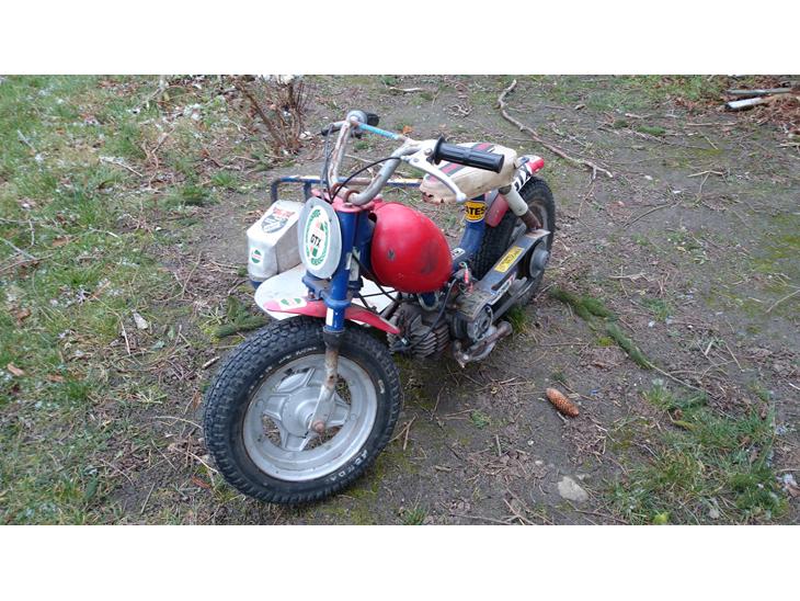 Der er med hjemme lavet noget fra nauet til fælgen og fælgen er fra en honda dax.