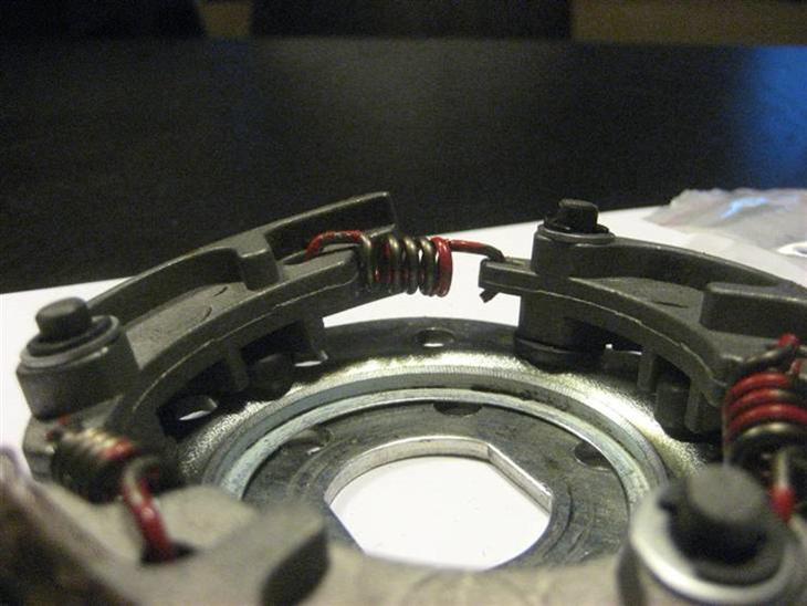 Sin opsætning kræver en ret sent tilkobling, så vi valgte en racer kobling. De std. monterede fjedre hjalp en del, men vi skulle have en endnu senere tilkobling. Vi monterede de næst hårdeste fjedre og prøvede igen, så skete ulykken.