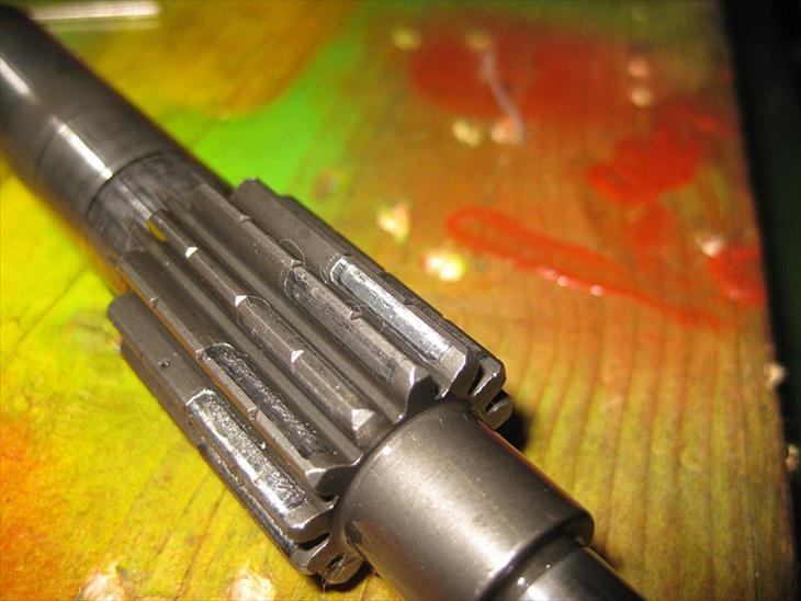 Vi tog olien af, og kunne se det ikke var gult mere men fyldt af metal rester. da vi fik gearingen ud kunne vi se hvad der var galt.