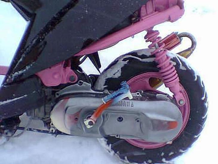 STEL : Stelforstærker, og derefter sandblæst, og autolakeret lyserød, samt fælgene.