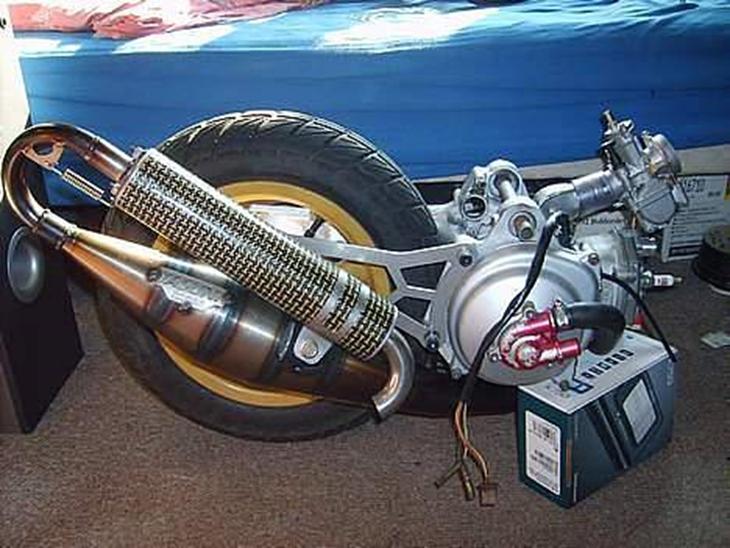 Den bliver først samlet når de sidste dele er bestilt og monteret. Det der mangler er Malossi Wingbell og Malossi Eprom:-)