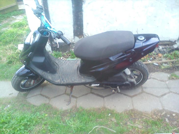 Blåt bartstyr med sølv adapter, motorblok og alt andet fra en 2009 model undtagen stel. grissetryne, rød olieprop og Gianelli knækudstødning.