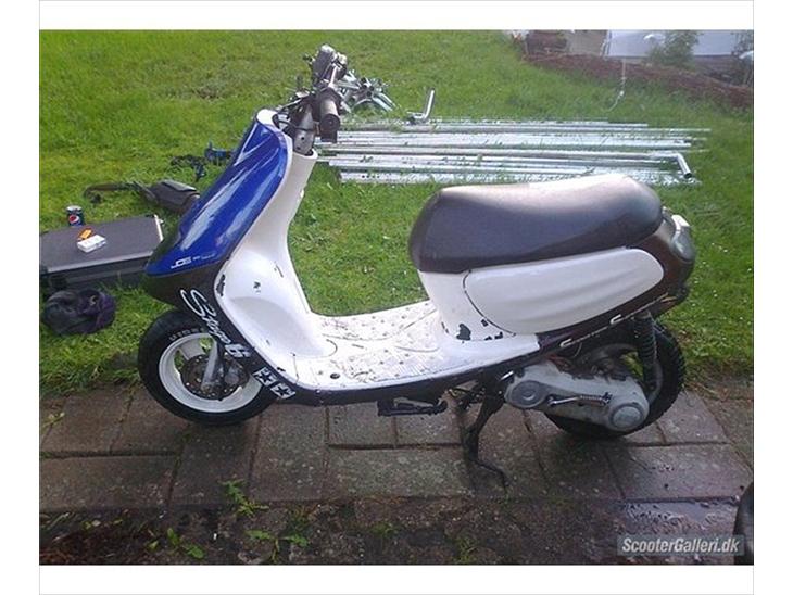 har lige hentet den igår og stemplet havde sat sig da sidste ejer var ved at kører den til.. stempel er total smadret og er nu gået igang med at rense hele motoren :) den skal nok blive super fin når den bliver klar igen. den er perlemor brun og lidt hvide skjolde.. det blå frontskjold sidder ikke på men et brunt perlemor :)