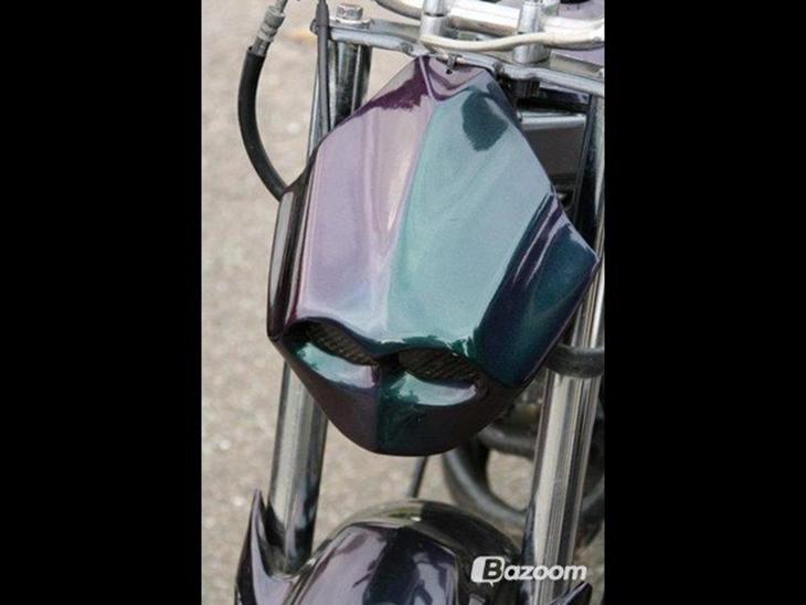 - Autolakeret kamæleon skjolde der skifter mellem sort, lilla og grøn.