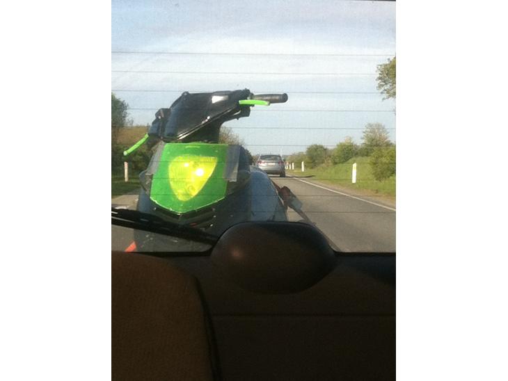 grønne bremsehåndtag og grøn lygte glas og lille led lys tårn i forlygten og det udskårne NOS foran under sædet