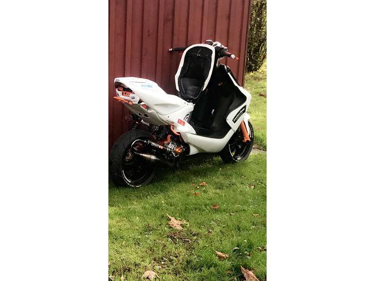 Voldsom og rigtig fin gammel Aerox der har fået en kæmpe make over. Maskinen har kørt ca. 2 timer og spiller bare. Alt i alt en gennemført maskine.