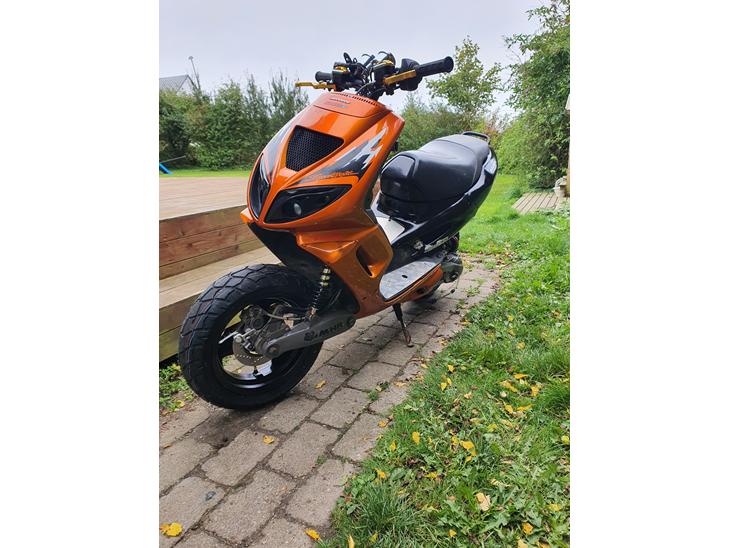 Scooteren er købt d. 13/5 standard og godt brugt og medtaget hist og her. Har lavet den lidt op siden.