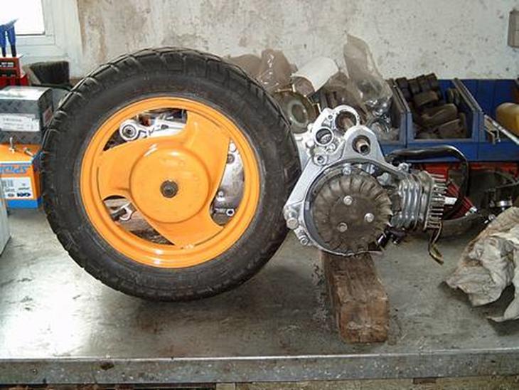 Motor, fælge, stel, forgaffel, variodeksel, er blevet glasblæst og malet!! Alle lejer i blokken er skiftet, nye kugler i forgaflen, ledningsværket er tapet op.. osv! (HELT ny jog faktisk)