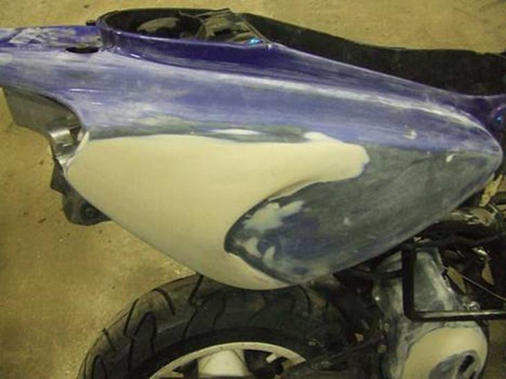 For det holder ikk til en skid, tag noget glasfiber uden på, polyester er kun til boler så hvis du brækker lidt i skjoldet knækker det