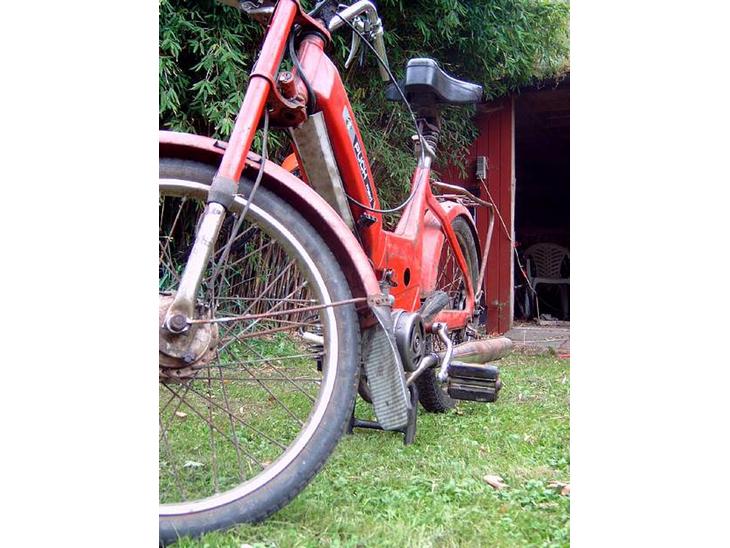 Er under ombygning, hehe :) Der er kommet en K- forgaffel på, og et Yamaha Cross styr på. Den er blevet spartlet ved tanken. Den er ved at blive lakeret.