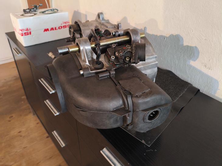 Motoren er nyrenoveret med mange højkvalitetsdele, bl.a. racing krumtap og Malossi 125cc cylinderkit samt 15/41 gearing. Den kører rigtig godt, har masser af moment og går nemt på baghjul. Testet med 100cc Tecnigas Silent Pro udstødning og 28mm Polini karburator nåede motoren en topfart på 95 km/t målt på GPS ved kun 8000 RPM. Motoren kan nemt monteres på flere scootere, f.eks. Yamaha, PGO m.fl., da den har en justerbar Euro 1-tænding. Motorblokken er flowoptimeret, og Malossi cylinderkitet har en poleret og let udvidet udstødningsport. Der er fundet et 58 mm topstykke, som passer perfekt til cylinderkitet. Se test af motoren her https://www.youtube.com/watch?v=Nch8jb7X4Jg&t=1s